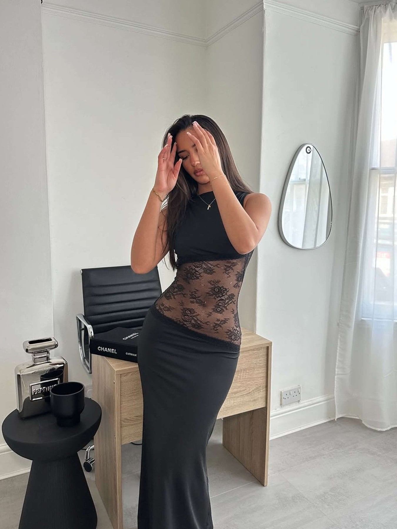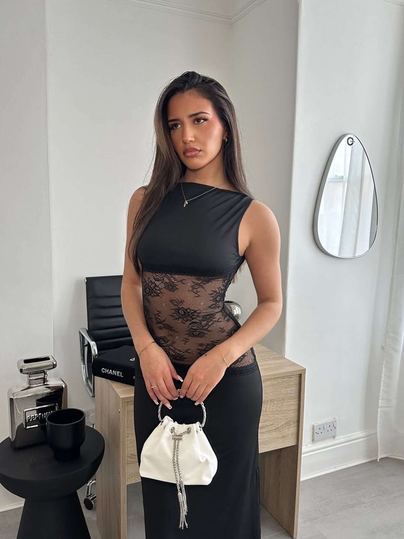 Nieve Maxi-klänningen med spetsdetaljer utstrålar tidlös elegans med en touch av romantik. Med en böljande silhuett och invecklade spetsdetaljer är denna klänning perfekt för drömska sommardagar, trädgårdsfester eller speciella tillfällen. Lätt och graciös, den rör sig vackert med varje steg och får dig att känna dig obehindrat förtrollande.
