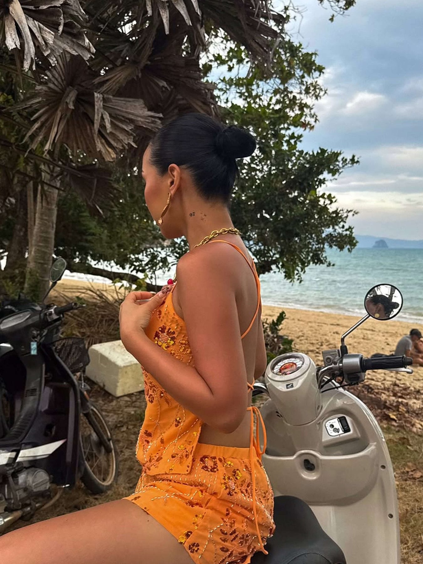Shila-toppen kombinerar eleganta linjer och mjuka texturer för en självsäker men ändå graciös look. Med sin halterneckringning, åtsittande överdel och öppna rygg smickrar detta plagg din figur samtidigt som det ger ett djärvt uttalande. Tillverkad av ett bekvämt stretchtyg är den perfekt för utekvällar, speciella tillfällen eller som lager-på-lager-under-en-kavaj för en elegant kontrast.