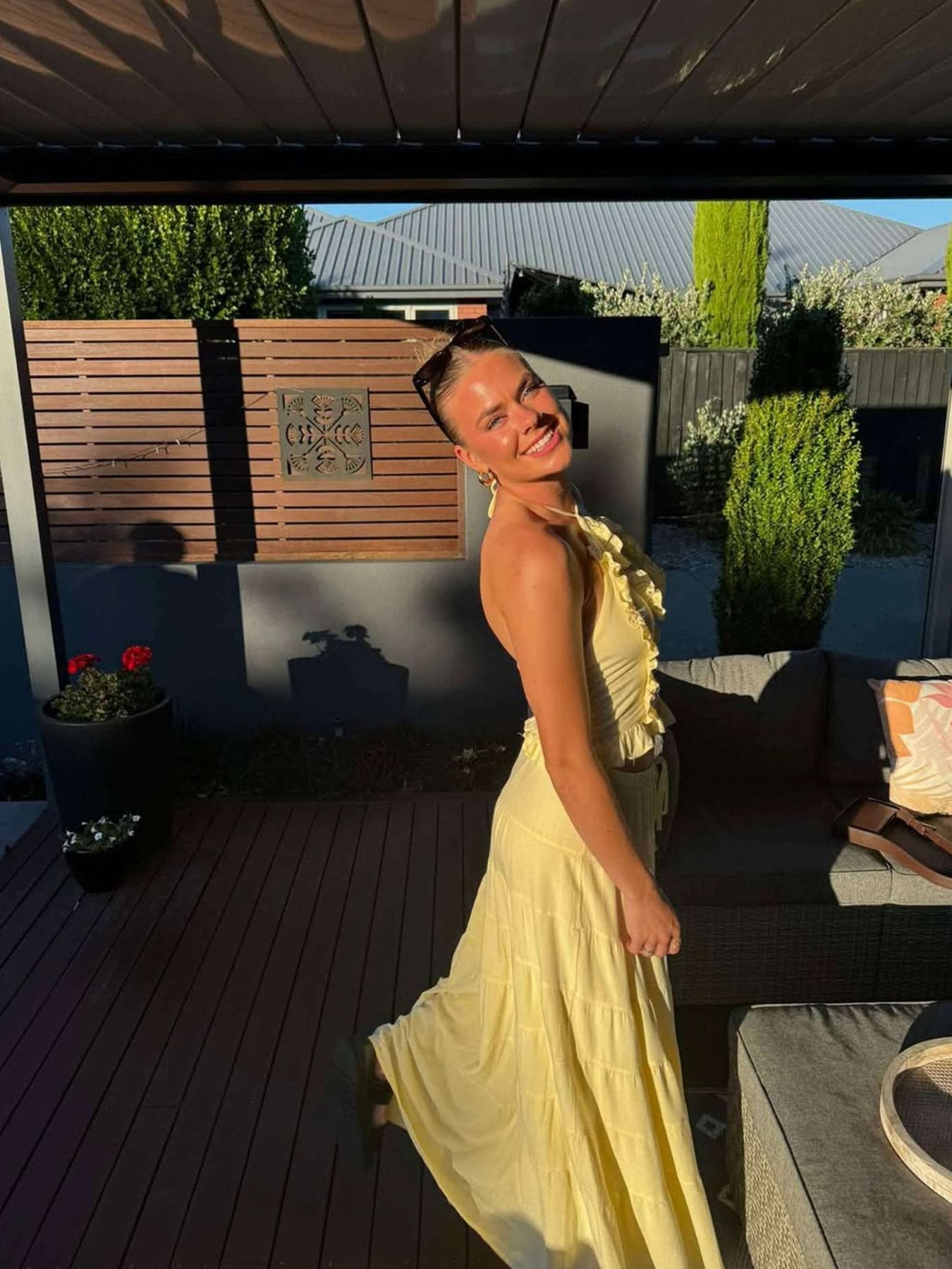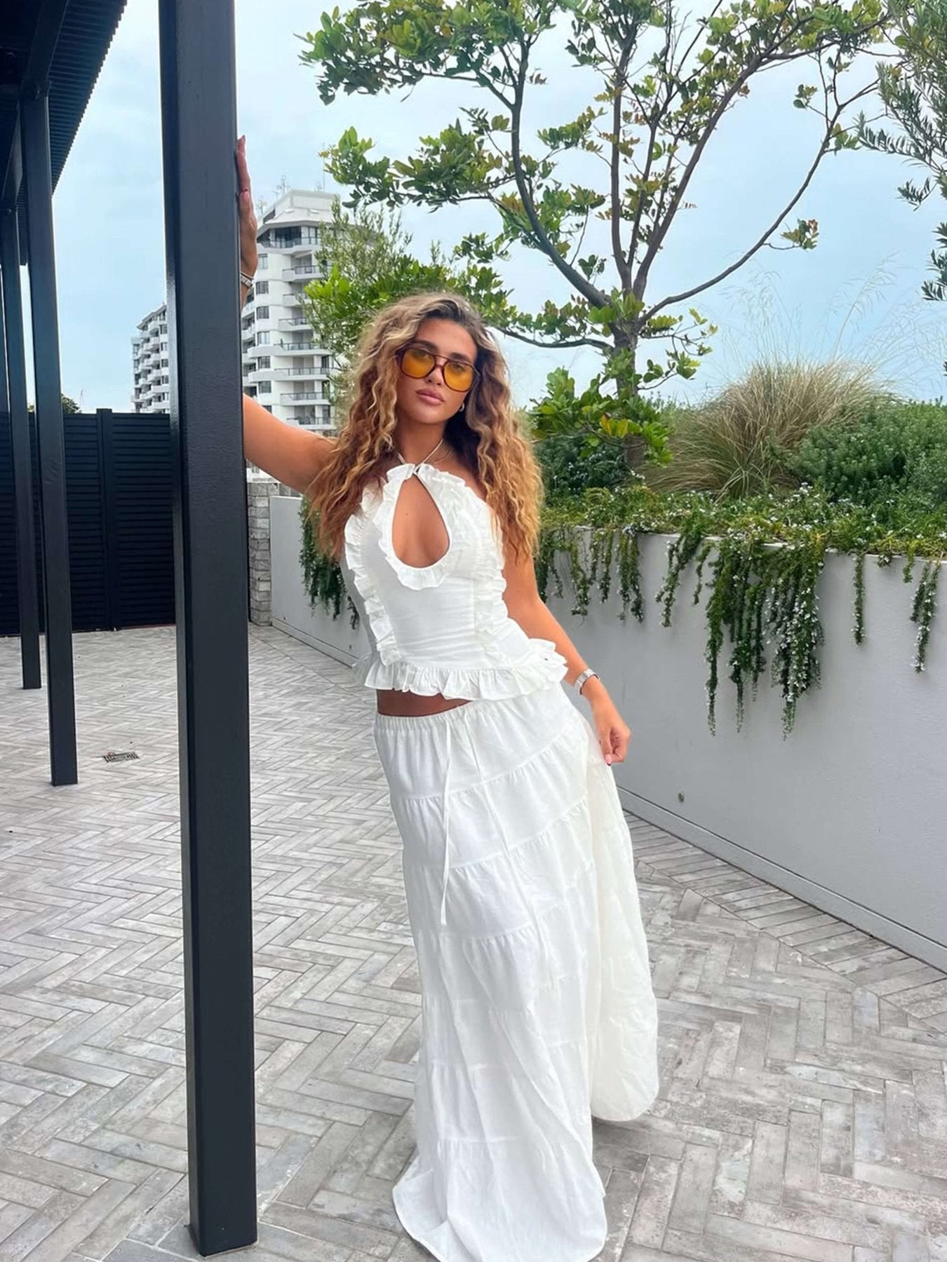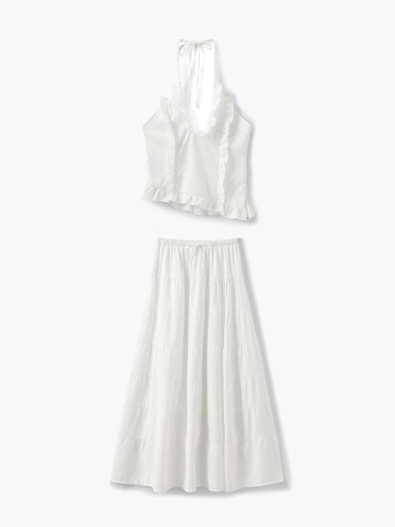Sophia-setet är en elegant och mångsidig tvådelad ensemble designad för att du ska känna dig snygg och bekväm hela dagen lång. Tillverkad av högkvalitativ polyester, har den en elegant halterneckringning med fina volangdetaljer, vilket ger en mjuk och feminin touch. Den böljande maxikjolen skapar en smickrande silhuett, vilket gör den till det perfekta valet för olika tillfällen som semestrar, brunchdejter eller sommarkvällar. Setet finns i fantastiska nyanser av blått, vitt och gult, så att du kan välja det som bäst passar din personliga stil. Oavsett om du klär upp dig för ett speciellt evenemang eller njuter av en avslappnad utflykt, erbjuder Sophia-setet både komfort och sofistikering. Matcha det med dina favoritsandaler eller klackar för en look som enkelt övergår från dag till kväll.